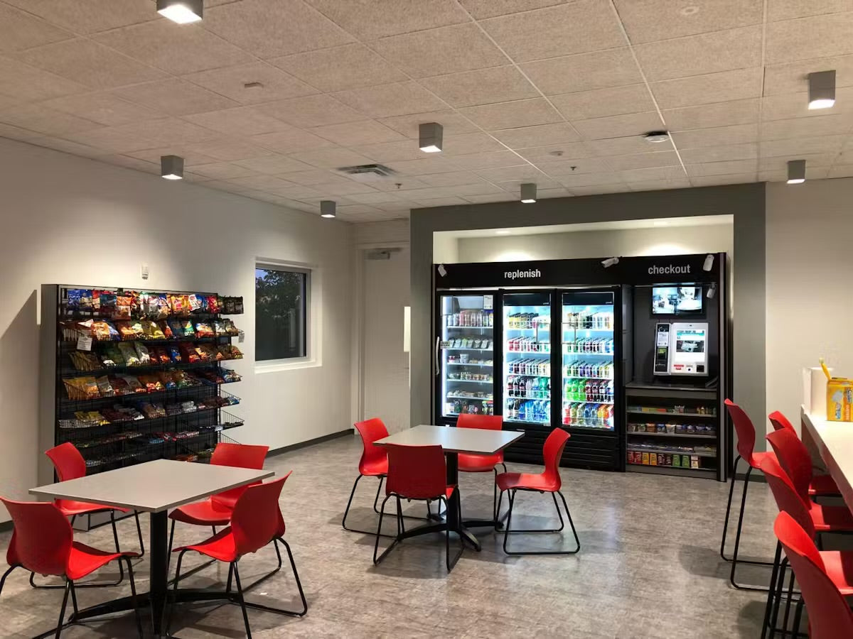Our Micro Markets transform your workplace or community area into a sleek, self-serve convenience store. They offer an expanded selection of snacks, meals, and drinks with secure self-checkout kiosks.